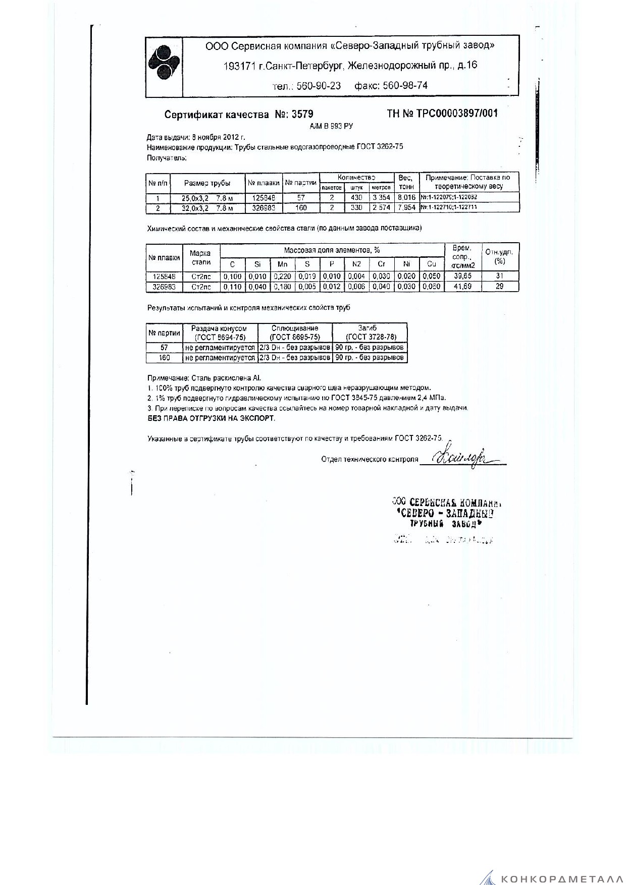 С каждой товарной позицией мы предоставляем все сертификаты и паспорта качества, а также товарно-транспортную накладную.